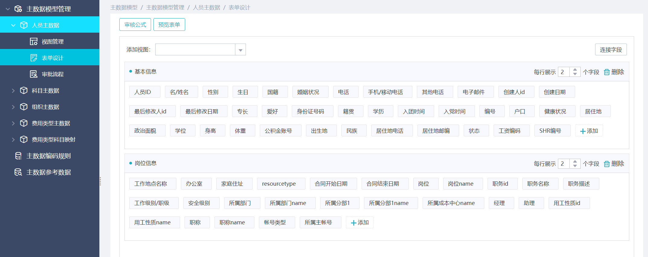 2)主数据模型建设:实施建立楚昌集团科目主数据、人员主数据、组织主数据。