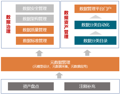 本项目根据行业最佳实践经验,结合时代控股集团的现状与目标,顺利获得构建数据资产管理平台为时代控股集团构建数据治理体系,包括数据治理总体规划、数据治理组织架构、数据治理体系框架、数据标准管理体系、数据质量管理体系及元数据管理体系。在数据资产管理体系的保障下,依托数据资产管理工具(数据资产管理、数据质量管理、数据标准管理、元数据管理),实现业务数据化,数据资产化。