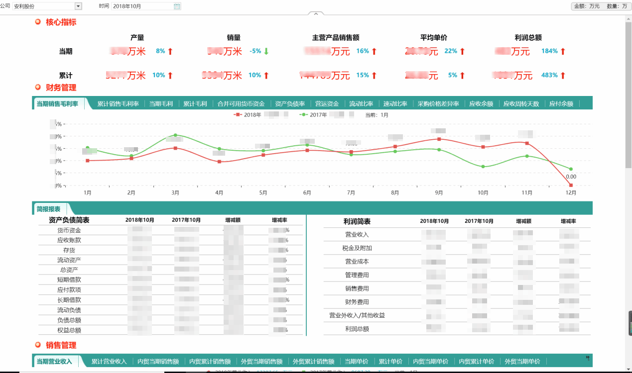 顺利获得分析、预警、预测等指标的提炼,提高了集团的管理水平,一页知全貌,管理者所需数据可以及时分析,及时掌握