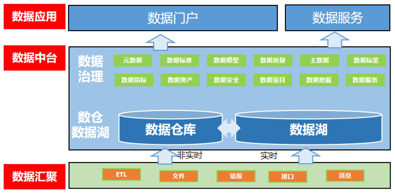 “两个中心”分别是汇聚中心、数据中心。汇聚中心是数据的采集汇聚及ETL功能平台;数据中心基于汇聚的数据实现数据湖/数据仓库的建设,为上层的数据治理及数据应用给予数据基础,数据中心同时要实现数据数据治理活动包括数据资产、数据质量、数据安全等相关功能。