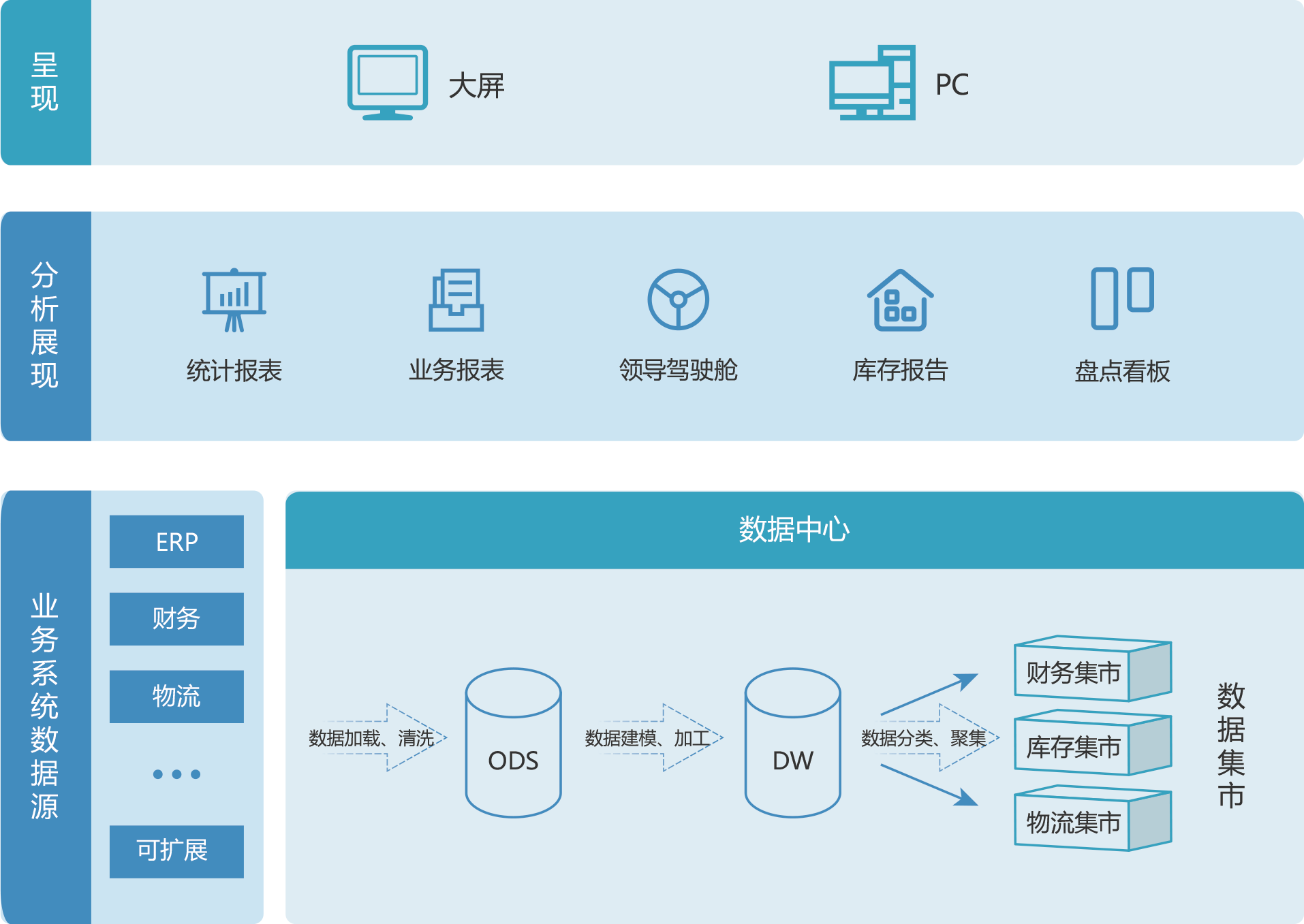 物流中心为分析决数据分析和报表统计问题,以仓储管理作为解决数据分析和报表统计问题的突破口。
