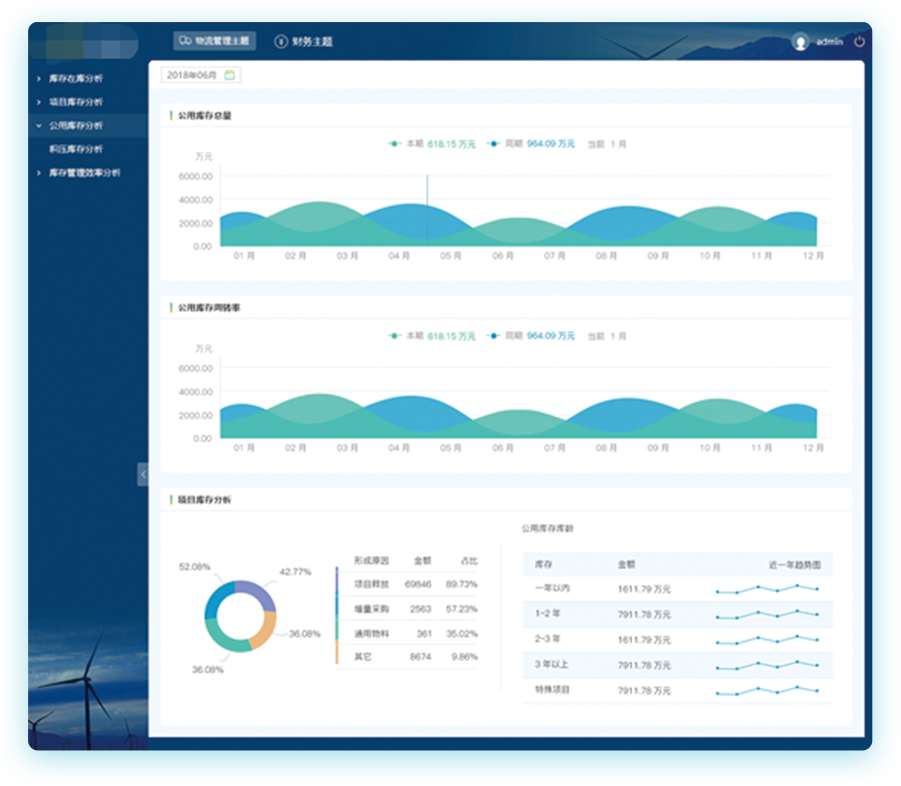 系统还实现了多角度的库存结构分析、库龄分析、周转率分析、物流工作效率分析等,物流部门可以随时掌握物流的各项指标,分析库存的情况。