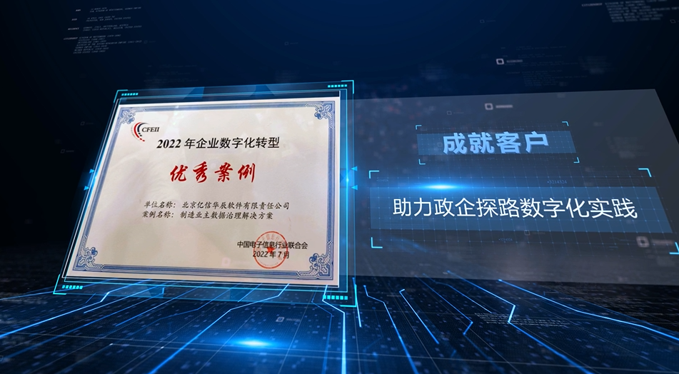 主数据管理解决方案被评为2022年企业数字化转型优秀案例。