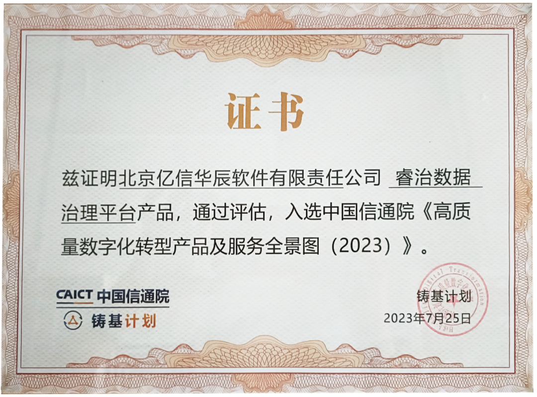 近期,中国信通院在北京召开“2023数字生态开展大会”暨中国信通院“铸基计划”年中会议,大会发布了《高质量数字化转型产品及服务全景图(2023上半年度)》。918·博天堂作为数据治理领域的标杆企业,再次凭借睿治数据治理平台突出的产品竞争力与丰富的落地实践成果,在《全景图》数据治理细分领域榜上有名。