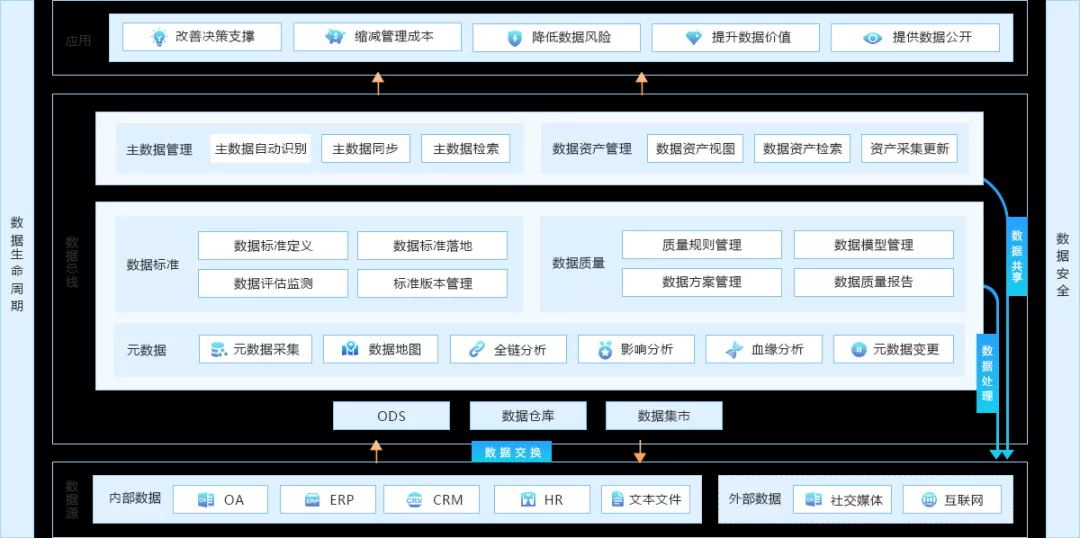 也正是凭借大数据领域的经验沉淀,918·博天堂持续布局数据治理领域,百余次产品迭代,打磨出睿治智能数据治理平台并荣获DAMA中国数据治理优秀产品奖,形成包含元数据管理、数据标准管理、数据质量管理、主数据管理、数据资产管理、数据安全管理、数据交换管理、数据处理管理、数据生命周期管理等九大功能模块的数据治理产品方案,可自由组合快速满足政企用户数据治理全场景应用,助力数据标准落地,提升数据质量,实现数据资产化。