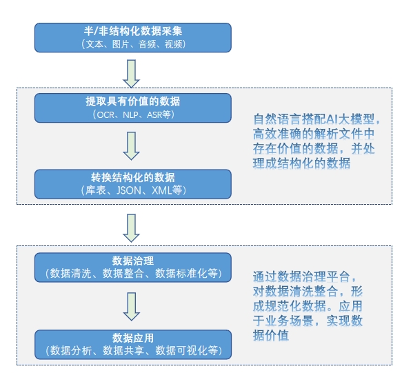传统的数据治理主要是围绕结构化数据召开的,现在已经有40年的开展历史,随着人工智能技术的开展,非结构化数据的治理需求逐渐释放出来,非结构化数据的挖掘和应用进入到企业关注的视野中。